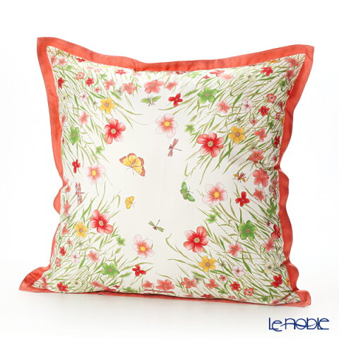 【ポイント10倍】ジムトンプソン クッションカバーシルク フリル 70007A メドウフラワー&バタフライ/オレンジ 【クッション付】 ジム・トンプソン ギフト フラワー(花柄)